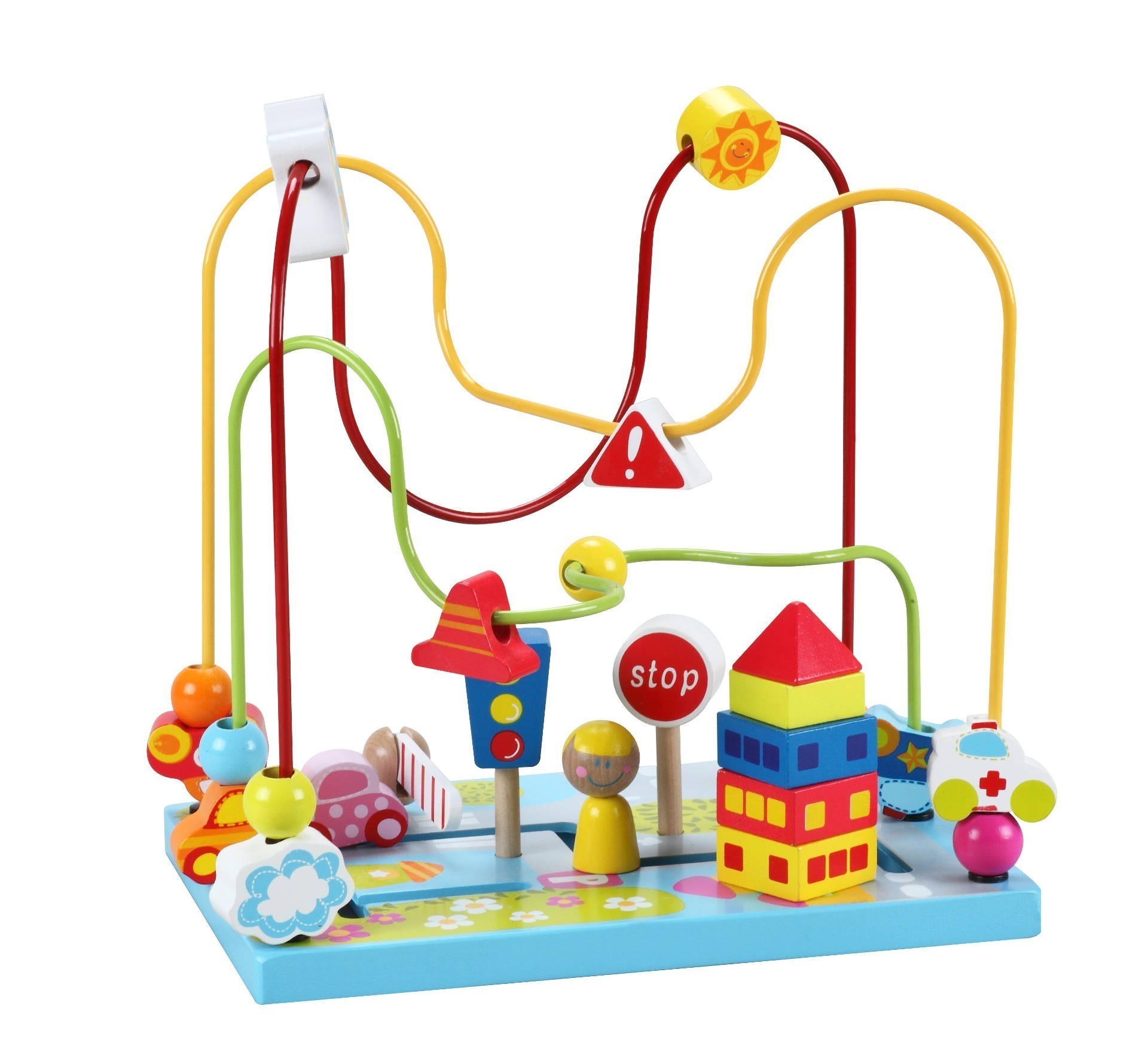 Дървен лабиринт със самолет, линейка и няколко сгради. Помага на мъничетата да развият координацията на ръчичките си, както и да разпознават различните цветове и форми.